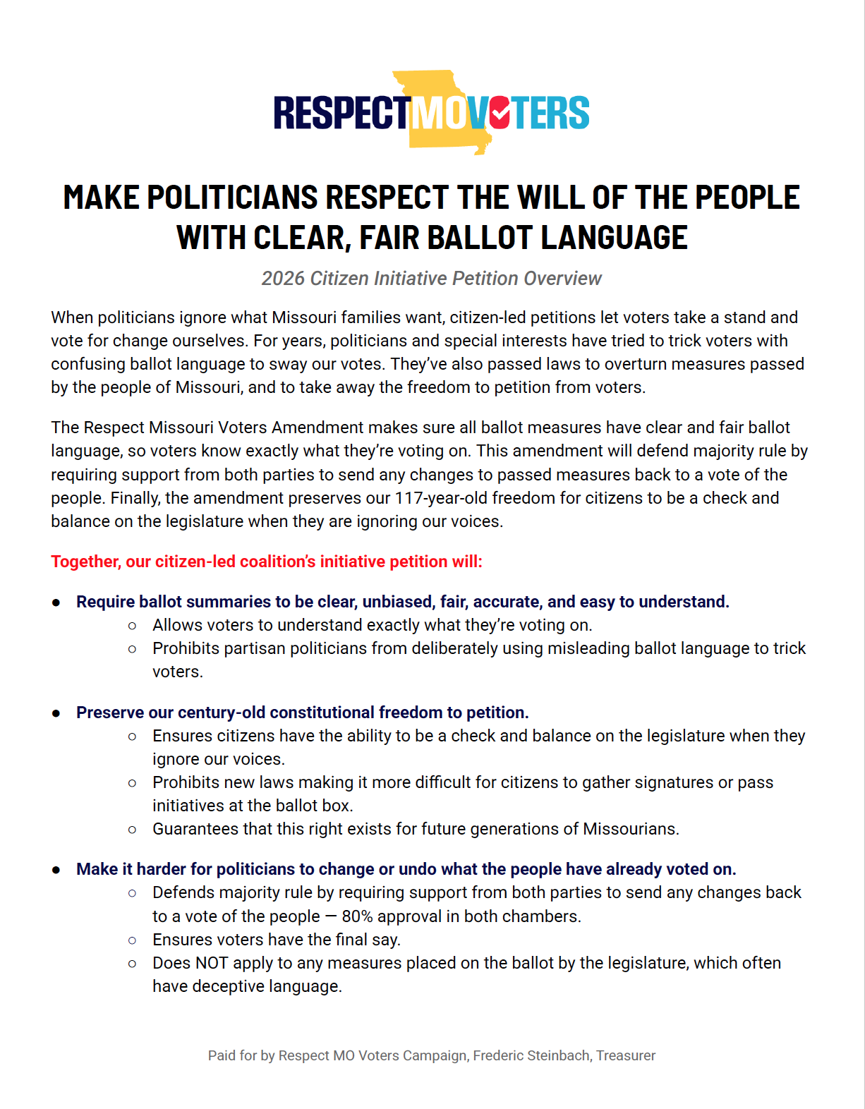 A front and back detailed overview of the 2026 Citizen Initiative and our Campaign Timeline to share with those who want more information.